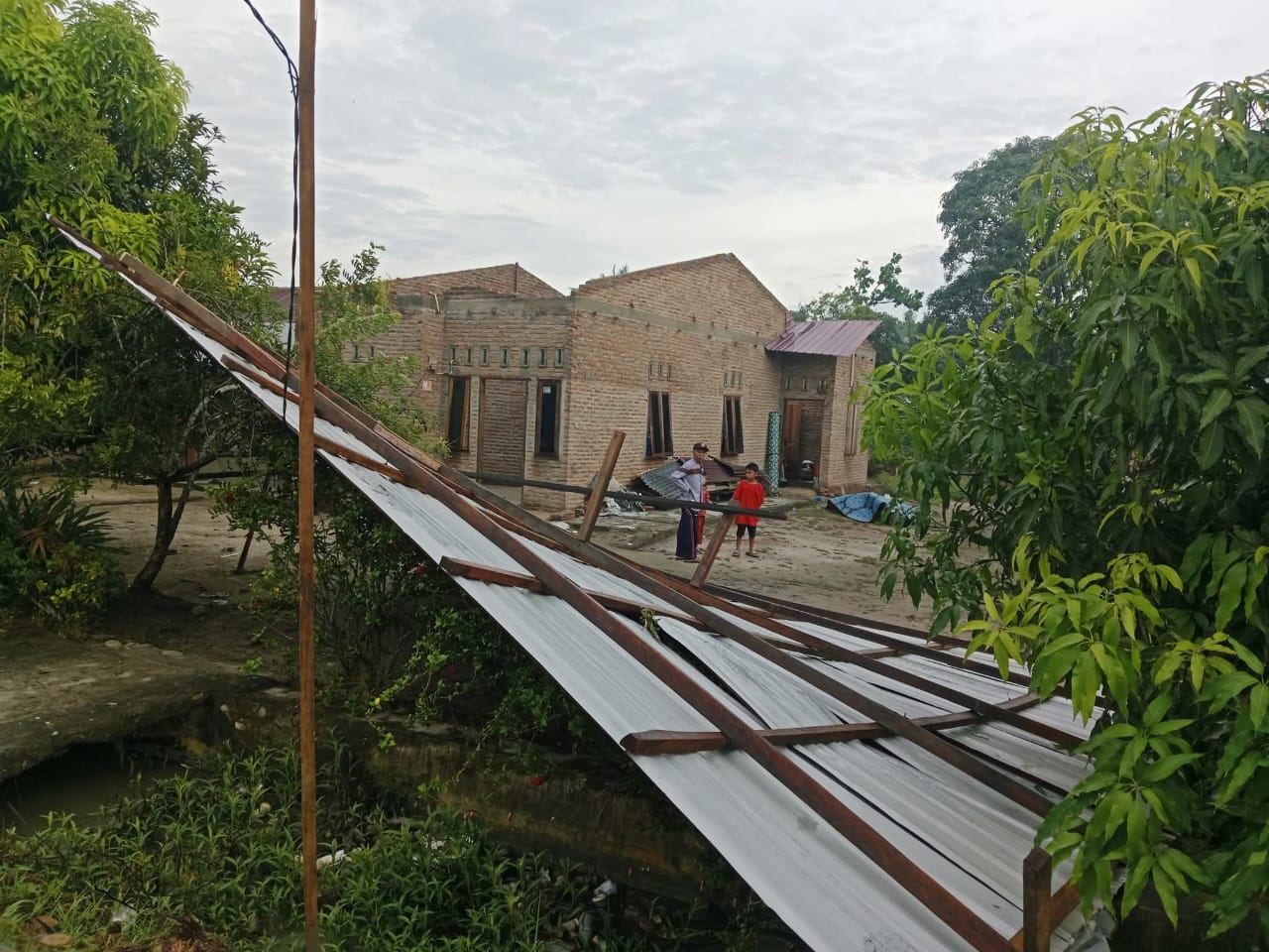 Sementara itu, di Dusun IX Desa Simpang Empat, 13 rumah warga dilaporkan rusak, termasuk satu gudang ampas milik warga yang roboh.