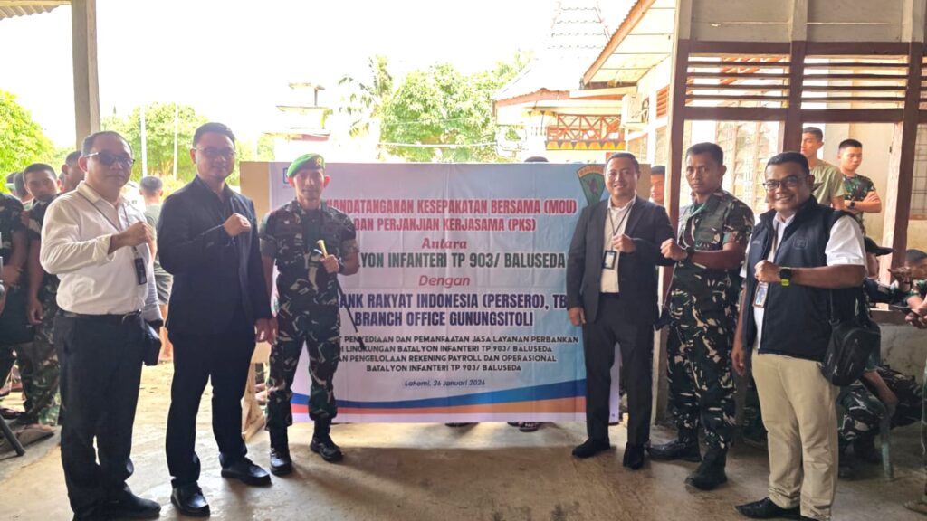 “Proses formalisasi kerjasama antara entitas publik dan lembaga keuangan sering kali dimulai dengan Nota Kesepakatan Bersama (MOU), yang kemudian ditindaklanjuti dengan Perjanjian Kerjasama (PKS) yang lebih detail. MoU ini menetapkan kerangka umum dan tujuan bersama yang ingin dicapai oleh kedua belah pihak. Dalam konteks ini, BRI Gunungsitoli dan Yonif TP 903/Baluseda menyepakati prinsip dasar kolaborasi dalam penyediaan jasa perbankan,” papar Branch Office Head BRI BO Gunungsitoli, Andri Prayogi kepada wartawan, Jum’at (30/1/2026) di Gunungsitoli.
